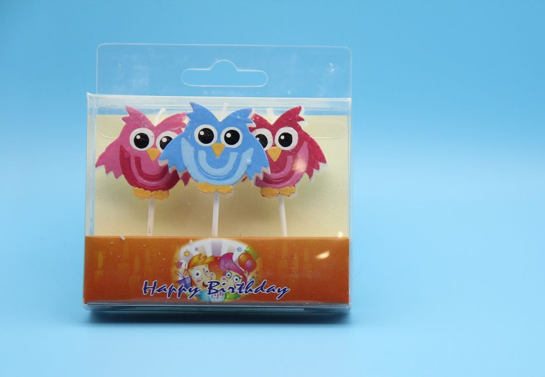 Home > Products > Shaped Birthday Candles > 3 Little Owl Shaped Birthday Candles With Colorful Painting And White Plastic Toothpick