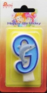 Product Name:Number Candle with Blue Edge and Blue Painted with little blue Dolphin