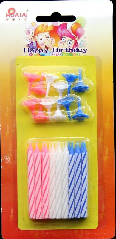3 Colors Birthday Candles with White Spiral 18Pcs and 3 Colors 12pcs flower holder