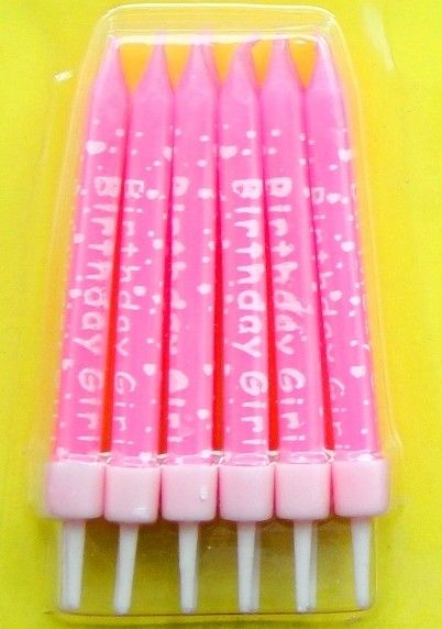 Product Name: Printed "Birthday Girl" Pink Birthday Candles 12pcs with White Holders and "Happy Birthday" Colorful Word Plate