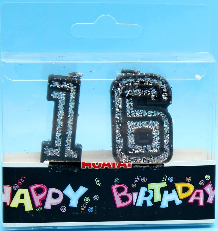 Extra Large Paraffin Tearless 16th Birthday Candle
