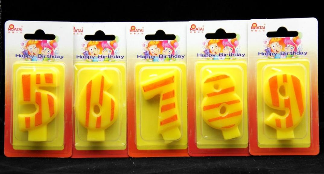 Number Birthday Candles 0-9 Yellow Candle with Orange color Stripe Painting