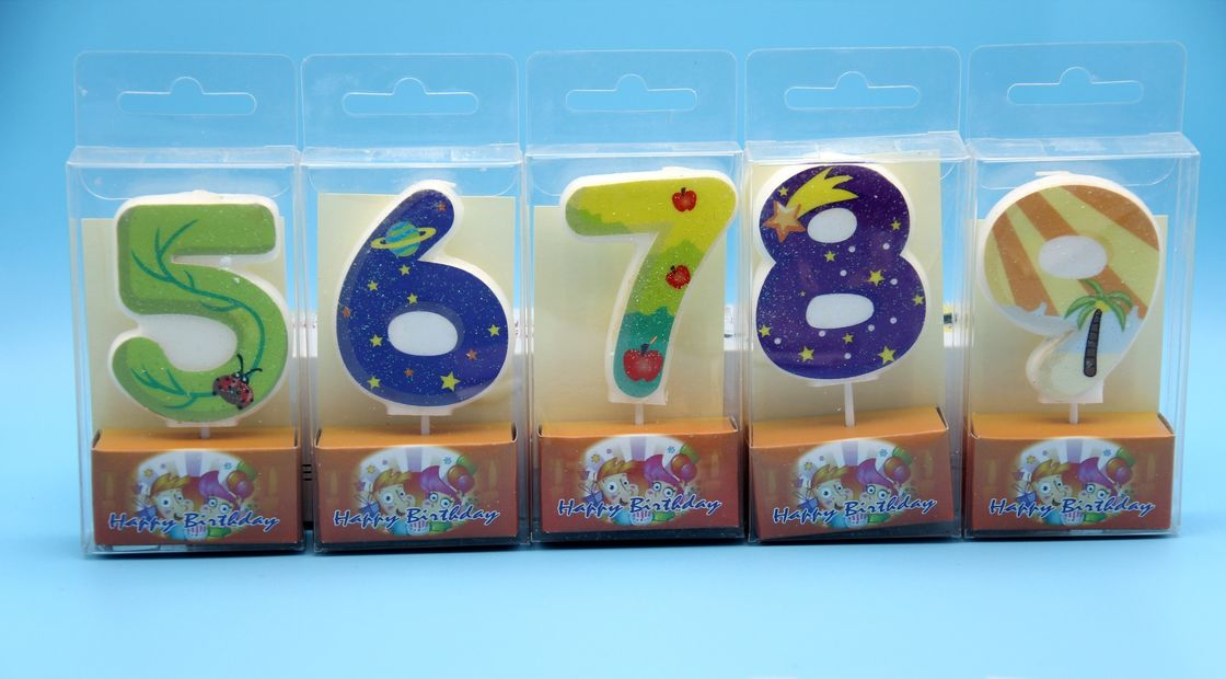 Number 0 To 9 Rainbow Birthday Candles , Anniversary Cake Candles Eco Friendly