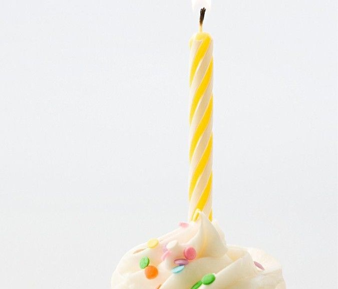 Yellow Color 24Pcs Simple Spiral Striped Birthday Candles With 12pcs Flower Holder
