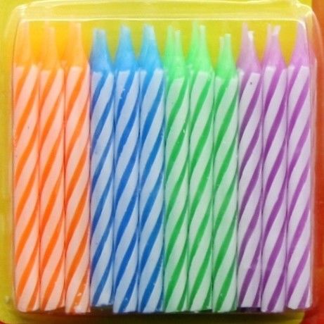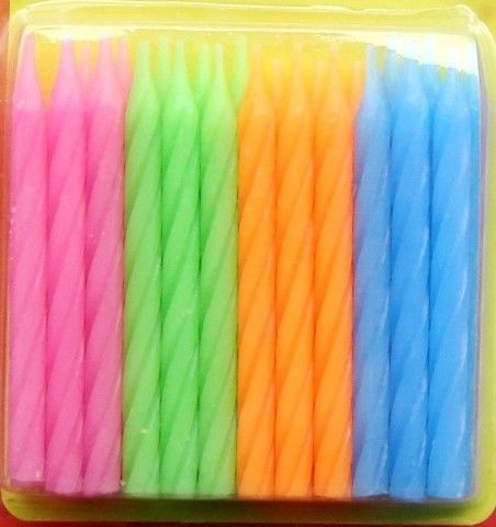 Long Spiral Birthday Cake Candles Smokeless 24 Pcs Blue Green Yellow Color